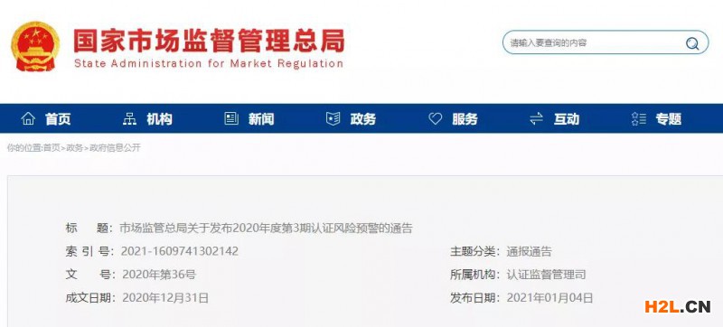 2020年度第3期認(rèn)證風(fēng)險預(yù)警的通告
