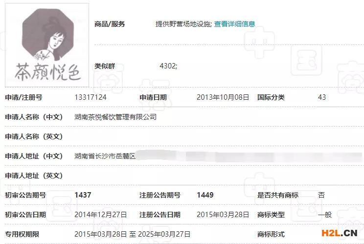 “茶顏悅色”商標(biāo)是湖南茶悅餐飲在2013年10月8日申請(qǐng)注冊(cè)的,該商標(biāo)上有手執(zhí)扇子的古風(fēng)女子圖案,其商標(biāo)狀態(tài)圖標(biāo)顯示為“注冊(cè)”。