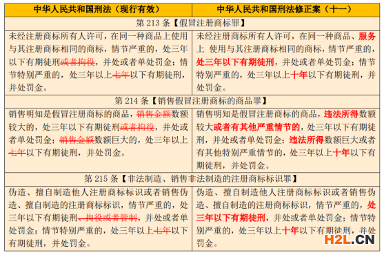 亮點(diǎn)一:侵犯注冊(cè)商標(biāo)的相關(guān)罪名,刪除拘役、管制,最低刑罰改為有期徒刑。