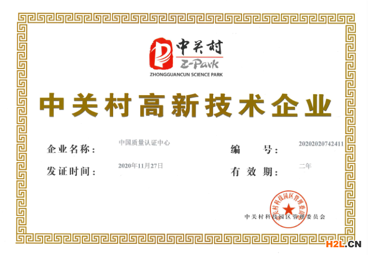 2020年11月,中國質(zhì)量認(rèn)證中心順利通過中關(guān)村高新技術(shù)企業(yè)認(rèn)定并獲得證書。