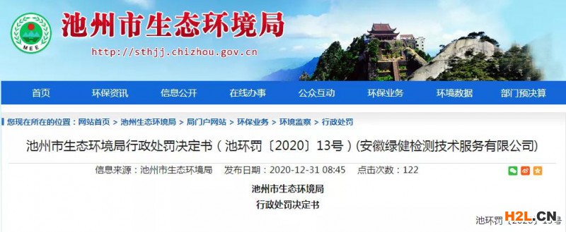 近日,池州市生態(tài)環(huán)境局對安徽綠健檢測機構(gòu)服務(wù)有限公司發(fā)布行政處罰決定書,詳情如下: