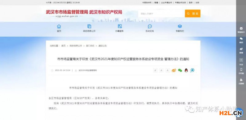 市市場監(jiān)管局關(guān)于印發(fā)《武漢市2021年度知識產(chǎn)權(quán)運營服務(wù)體系建設(shè)專項資金管理辦法》的通知