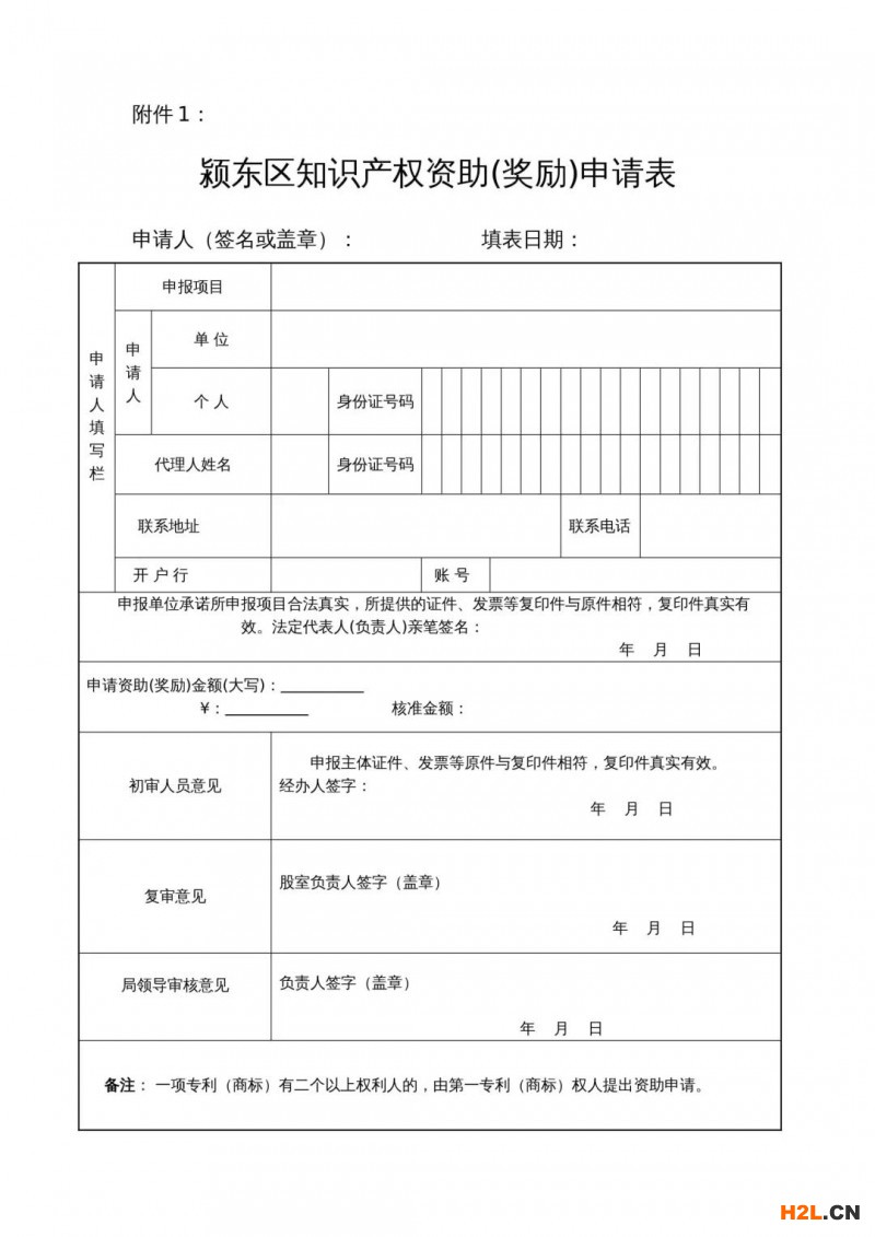1.《潁東區(qū)知識(shí)產(chǎn)權(quán)資助(獎(jiǎng)勵(lì))申請(qǐng)表》