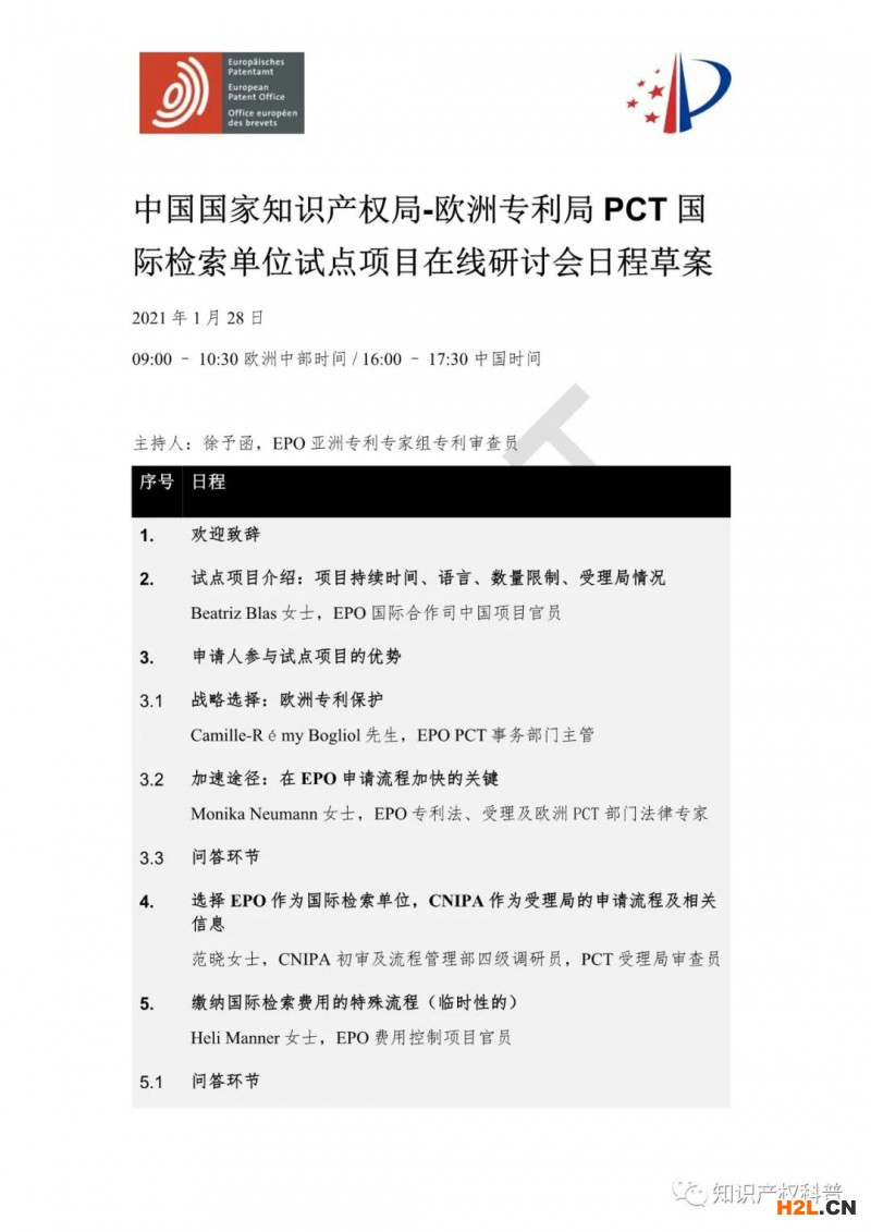 關(guān)于舉辦中歐兩局PCT國際檢索單位試點項目在線研討會的通知
