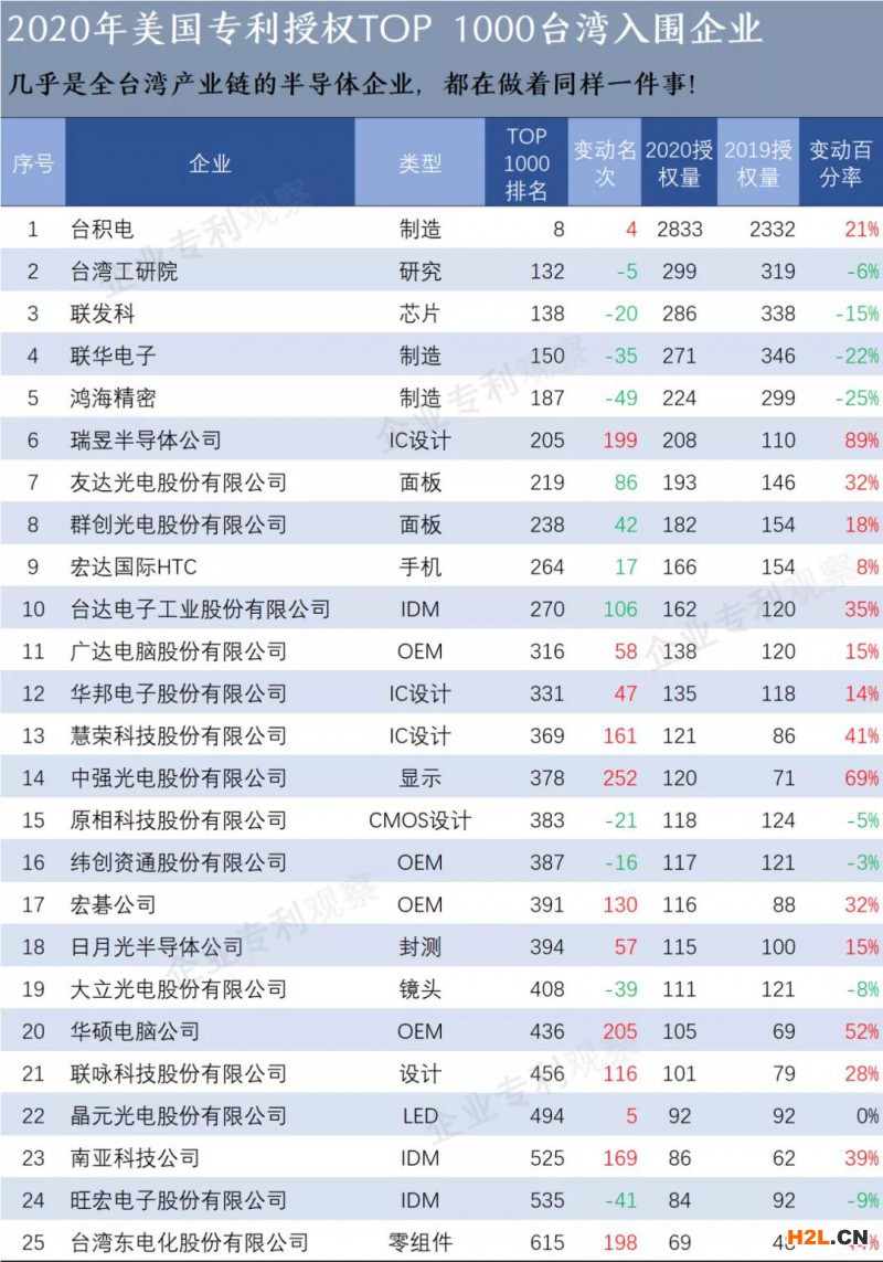 臺(tái)灣產(chǎn)業(yè)界很早就對(duì)此達(dá)成了共識(shí)。尤其在高科技行業(yè),拿下美國(guó)專利已經(jīng)成為必選項(xiàng),從結(jié)果來(lái)看,取得了一定效果。