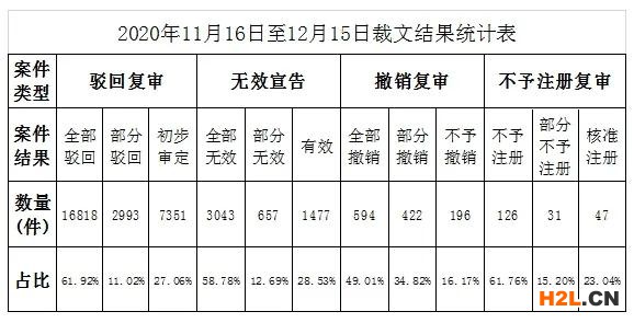 商標(biāo)評(píng)審案件審理情況月報(bào)(2020年第12期)