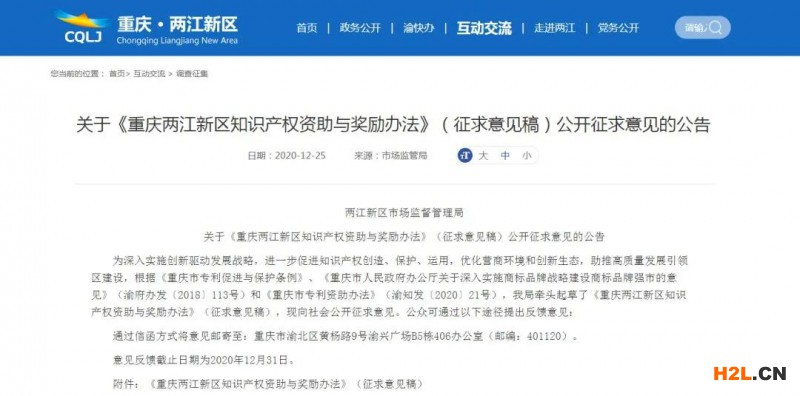 核心提示:附件:重慶兩江新區(qū)知識(shí)產(chǎn)權(quán)資助與獎(jiǎng)勵(lì)辦法(征求意見稿)第一章 總 則第一條為深入實(shí)施創(chuàng)新驅(qū)動(dòng)發(fā)展戰(zhàn)略,進(jìn)一步促進(jìn)知識(shí)產(chǎn)權(quán)創(chuàng)造、保護(hù)、