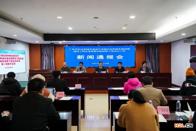 2021年1月14日上午,廣東省住房城鄉(xiāng)建設(shè)廳簽發(fā)該省承接住房和城鄉(xiāng)建設(shè)部建設(shè)工程企業(yè)資質(zhì)審批權(quán)限下放試點(diǎn)的第一張資質(zhì)電子證書,并在新聞通報(bào)會上介紹了廣東省承接住房和城鄉(xiāng)建設(shè)部資質(zhì)審批權(quán)限下放試點(diǎn)工作情況。