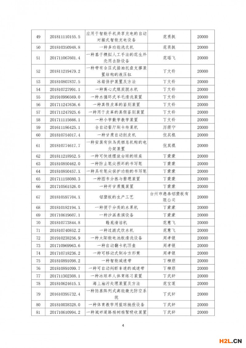 根據(jù)《關(guān)于開展2020年度專利獎勵申報的通知》(天市監(jiān)〔2020〕129號)、《關(guān)于加快推進(jìn)制造業(yè)高質(zhì)量發(fā)展的若干意見》(天政辦發(fā)〔2020〕25號)、《天臺縣專利獎勵辦法》(天政辦發(fā)〔2018〕68號)等文件精神。通過企業(yè)自主申報,縣市場監(jiān)督管理局形式審核,現(xiàn)將符合條件的獎勵清單公示如下。