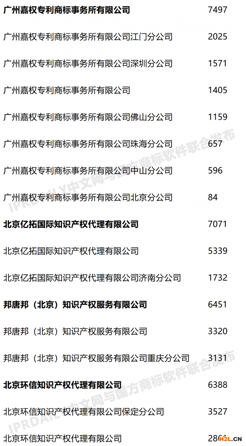 1、全國(guó)商標(biāo)申請(qǐng)量TOP10代理機(jī)構(gòu)