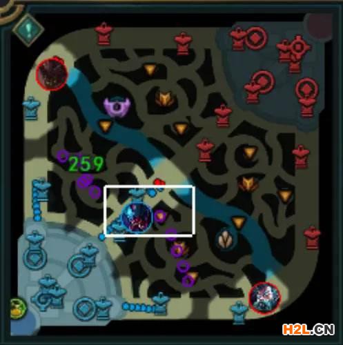 相較于《英雄聯(lián)盟》游戲縮略地圖,《王者榮耀》的變化體現(xiàn)在兩個方面:一方面,《王者榮耀》游戲縮略地圖減少了水晶數(shù)量,去除了兩座水晶門牙塔及裝飾建筑,同時去除了部分障礙物;另一方面,《王者榮耀》游戲縮略地圖改變了障礙物的形狀、間距,拉大了部分障礙物開口弧度。【2】