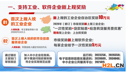 1.首次上規(guī)入統(tǒng)的工業(yè)企業(yè)。為夯實(shí)我市工業(yè)發(fā)展基礎(chǔ),擴(kuò)大工業(yè)總量,鼓勵(lì)工業(yè)企業(yè)上規(guī)入統(tǒng),從2017年起,市工信局對新增上規(guī)入統(tǒng)企業(yè)給予獎(jiǎng)勵(lì)。2020年,市工信局根據(jù)新的發(fā)展形勢,正在擬定《北海市2020年工業(yè)企業(yè)扶持行動(dòng)方案》,支持力度有增不減。此外還計(jì)劃對現(xiàn)有規(guī)模以上工業(yè)企業(yè),給予產(chǎn)值上臺階獎(jiǎng)勵(lì)。除了市級配套部分,自治區(qū)還對首次上規(guī)的企業(yè)給予10萬元獎(jiǎng)勵(lì),2020年該政策繼續(xù)保持不變。