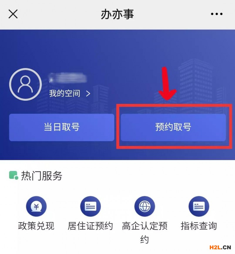 2、點擊“預(yù)約取號”,辦事人通過個人身份認證后即可登錄進入預(yù)約界面: