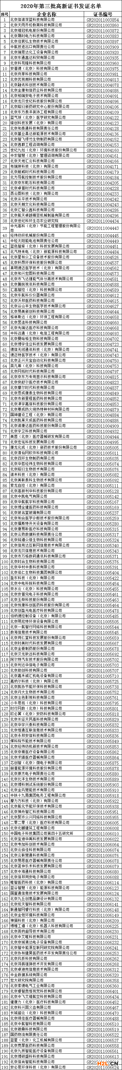 附件:北京經(jīng)濟開發(fā)區(qū)2020年第三批、第四批高新技術(shù)企業(yè)發(fā)證名單
