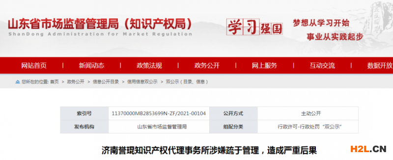 近日,山東省市場監(jiān)督管理局(知識產(chǎn)權(quán)局)網(wǎng)站發(fā)布了最新處罰單位,濟南譽琨知識產(chǎn)權(quán)代理事務(wù)所涉嫌疏于管理,造成嚴重后果,被約談警告!