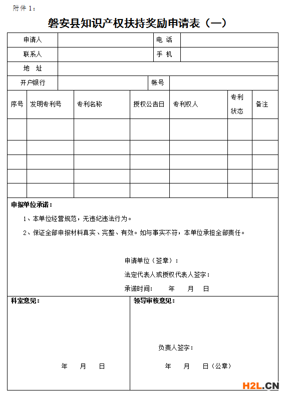 附件:磐安縣知識產(chǎn)權(quán)扶持獎勵申請表