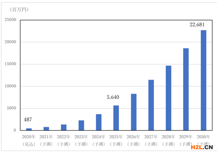 日本智能紡織品市場(chǎng)規(guī)模預(yù)計(jì)較去年增長(zhǎng)171.5%,達(dá)到4.87億日元,預(yù)計(jì)到2025年將增長(zhǎng)到56.4億日元,2030年達(dá)到226.81億日元。