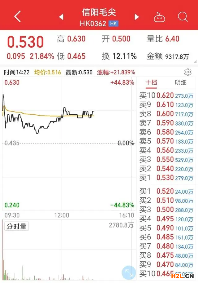 隨后,股價已連續(xù)多年低于1港元的“仙股”信陽毛尖在2月17日開盤迅速漲超44%。