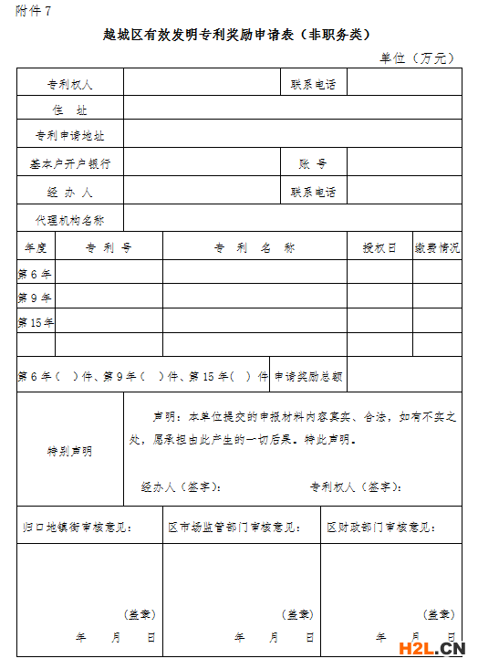 7.越城區(qū)有效發(fā)明專利獎勵申請表(職務(wù)類);
