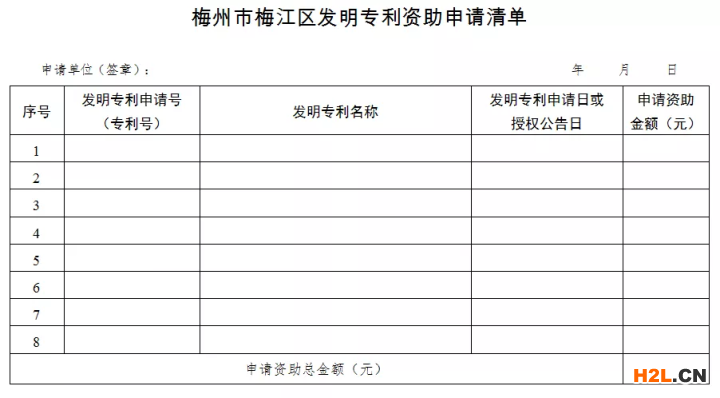 1.《梅州市梅江區(qū)知識(shí)產(chǎn)權(quán)事業(yè)發(fā)展資助(獎(jiǎng)勵(lì))申請(qǐng)表》和《梅州市梅江區(qū)發(fā)明專利資助申請(qǐng)清單》;