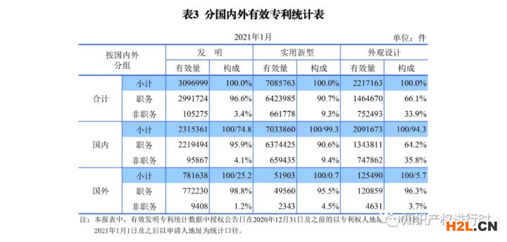 2021年1月,發(fā)明專利授權(quán)4.8201萬件。截至20201年1月底,我國發(fā)明專利有效量為309.6999萬件。
