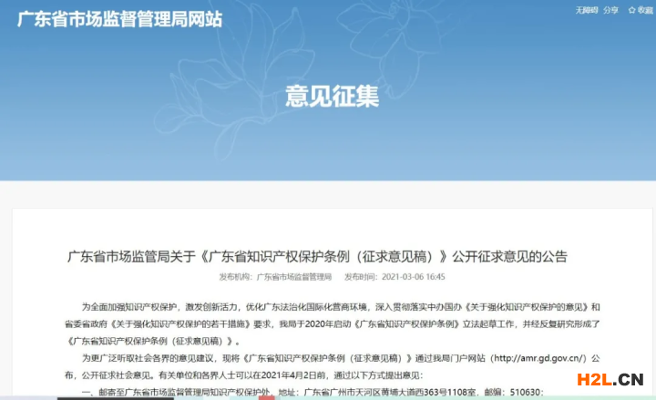 廣東省市場(chǎng)監(jiān)管局關(guān)于《廣東省知識(shí)產(chǎn)權(quán)保護(hù)條例(征求意見(jiàn)稿)》公開(kāi)征求意見(jiàn)的公告