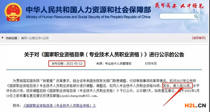 2021年1月12日,人社部對2017年公布的職業(yè)資格進行調(diào)整并公示,調(diào)整后,擬列入專業(yè)技術(shù)人員職業(yè)資格58項,其中準(zhǔn)入類31項,水平評價類27項。