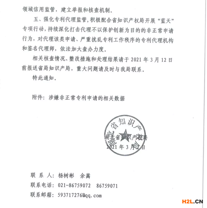 并且要求督導(dǎo)相關(guān)申請(qǐng)人對(duì)尚未審結(jié)的所有專利申請(qǐng)進(jìn)行自查(涉事申請(qǐng)人名單另發(fā)),將確屬不以保護(hù)創(chuàng)新為目的的專利申請(qǐng)全部撤回。對(duì)積極主動(dòng)撤回的,可酌情從輕處置;對(duì)拒不撤回又不提供充分書面證據(jù)的,根據(jù)情節(jié)依法從嚴(yán)從重處理,必要時(shí)可將相關(guān)線索信息轉(zhuǎn)公安、信用監(jiān)管部門依法處置。
