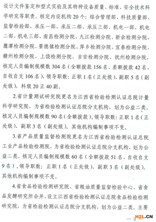 根據(jù)《江西省深化事業(yè)單位改革試點工作方案》,江西省檢驗檢測認證總院為江西省市場監(jiān)管局管理的副廳級事業(yè)單位,主要承擔特種設(shè)備、工業(yè)產(chǎn)品、農(nóng)產(chǎn)品、食品等檢驗檢測認證職責。