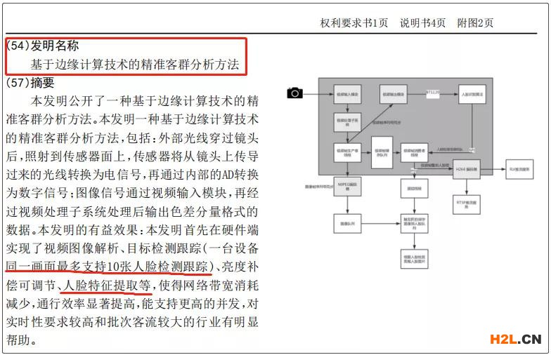 2019年7月8日,該公司申請了“基于邊緣計算技術(shù)的精準客群分析方法”發(fā)明專利,本發(fā)明首先在硬件端實現(xiàn)了視頻圖像解析、目標檢測跟蹤(一臺設備同一畫面最多支持10張人臉檢測跟蹤)、亮度補償可調(diào)節(jié)、人臉特征提取等,使得網(wǎng)絡帶寬消耗減少,通行效率顯著提高,能支持更高的并發(fā),對實時性要求較高和批次客流較大的行業(yè)有明顯幫助。