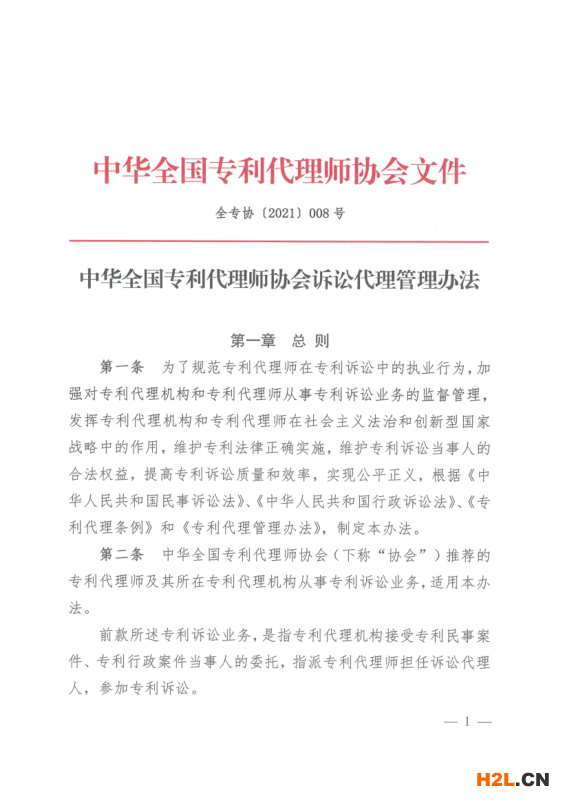 中華全國專利代理師協(xié)會訴訟代理管理辦法