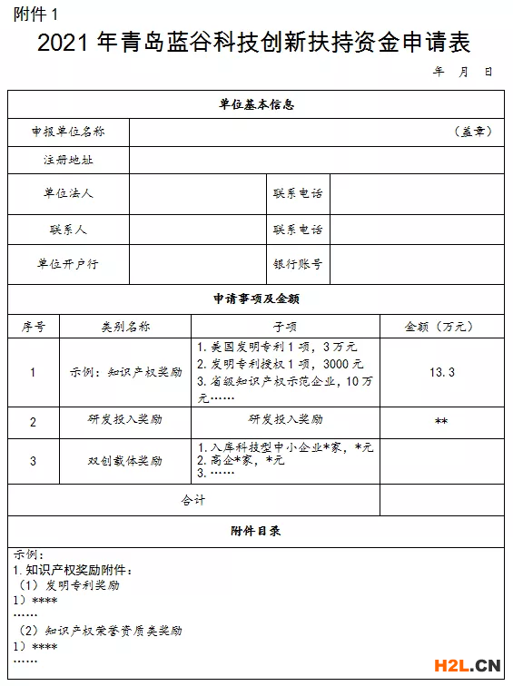 附件:1. 2021年青島藍谷科技創(chuàng)新扶持資金申請表