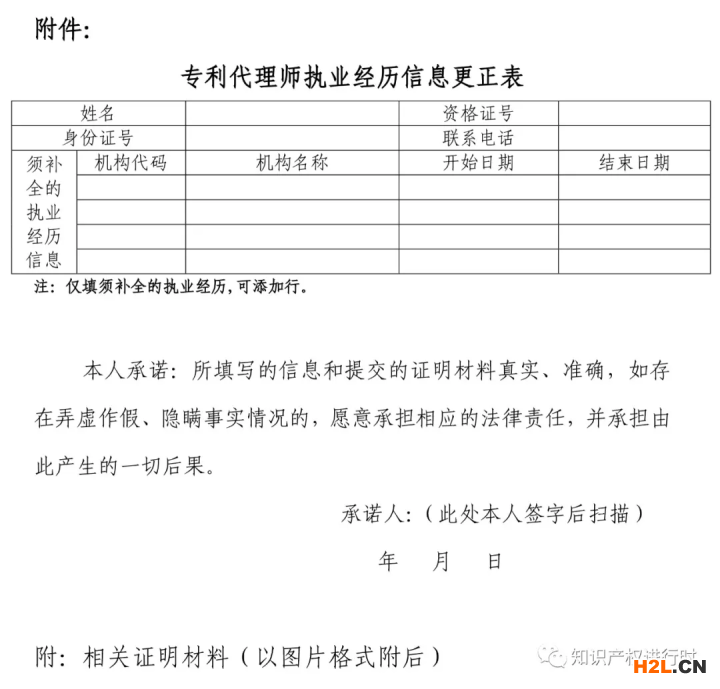 如須更正,請?zhí)顚憟?zhí)業(yè)經(jīng)歷信息更正表(附件),連同相關證明材料(如執(zhí)業(yè)證復印件、聘用協(xié)議、離職證明等)發(fā)送至dailiguanli_1@cnipa.gov.cn,經(jīng)核實后予以更正。