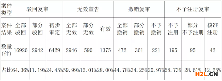 2020年12月16日至2021年1月15日,審理簽發(fā)各類評(píng)審案件32595件,同比減少8.02%,其中簽發(fā)駁回復(fù)審案件26297件,同比減少11.72%,簽發(fā)復(fù)雜案件6298件 ,同比增長(zhǎng)11.47%,按照復(fù)雜案件與駁回復(fù)審比例為1:8計(jì)算,折合工作量同比增長(zhǎng)2.26%。