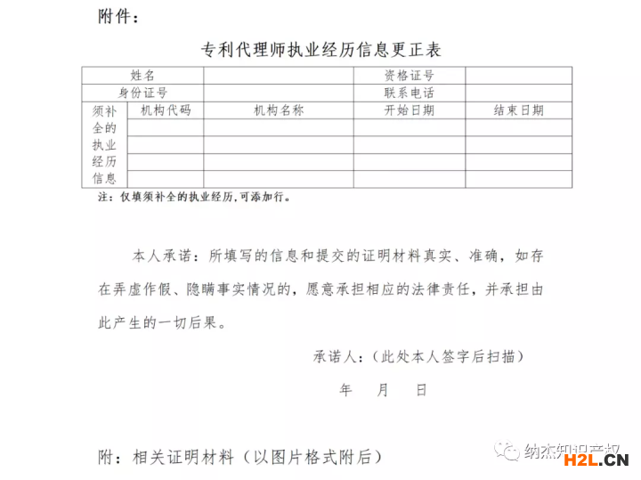 如須更正,請?zhí)顚憟?zhí)業(yè)經(jīng)歷信息更正表(附件),連同相關(guān)證明材料(如執(zhí)業(yè)證復(fù)印件、聘用協(xié)議、離職證明等)發(fā)送至dailiguanli_1@cnipa.gov.cn,經(jīng)核實后予以更正。