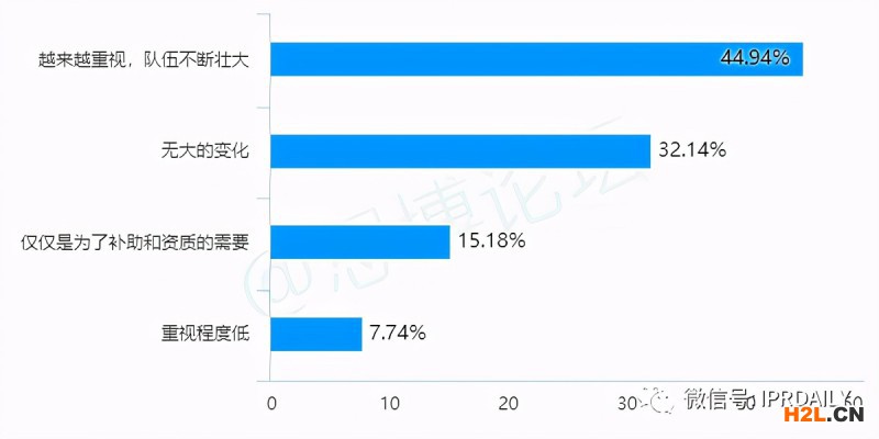 7、企業(yè)IPR在企業(yè)內(nèi)部話語權(quán)較低,這跟企業(yè)老板及上級(jí)重視程度有關(guān),在大廠的企業(yè)IPR會(huì)好很多,企業(yè)對(duì)知識(shí)產(chǎn)權(quán)的重視程度較高。