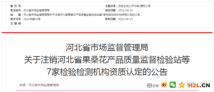 河北省果?;óa(chǎn)品質(zhì)量監(jiān)督檢驗(yàn)站等7家機(jī)構(gòu)申請注銷其檢驗(yàn)檢測機(jī)構(gòu)資質(zhì)認(rèn)定(計(jì)量認(rèn)證)證書。依據(jù)《檢驗(yàn)檢測機(jī)構(gòu)資質(zhì)認(rèn)定管理辦法》第三十九條第三款之規(guī)定,注銷其檢驗(yàn)檢測機(jī)構(gòu)資質(zhì)認(rèn)定證書。注銷機(jī)構(gòu)名單及證書號如下: