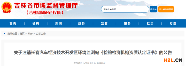 根據(jù)長春汽車經(jīng)濟(jì)技術(shù)開發(fā)區(qū)環(huán)境監(jiān)測站申請,依據(jù)《檢驗(yàn)檢測機(jī)構(gòu)資質(zhì)認(rèn)定管理辦法》(原質(zhì)檢總局令第163號)第三十九條第三項(xiàng)規(guī)定,現(xiàn)決定即日起注銷長春汽車經(jīng)濟(jì)技術(shù)開發(fā)區(qū)環(huán)境監(jiān)測站《檢驗(yàn)檢測機(jī)構(gòu)資質(zhì)認(rèn)定證書》(資質(zhì)認(rèn)定證書編號170712050032)。