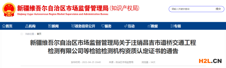 根據(jù)《中華人民共和國行政許可法》、《檢驗(yàn)檢測機(jī)構(gòu)資質(zhì)認(rèn)定管理辦法》(原國家質(zhì)量監(jiān)督檢驗(yàn)檢疫總局令163號),自治區(qū)市場監(jiān)督管理局決定注銷昌吉市道橋交通工程檢測有限公司等3家檢驗(yàn)檢測機(jī)構(gòu)《檢驗(yàn)檢測機(jī)構(gòu)資質(zhì)認(rèn)定證書》,具體名單見附件。