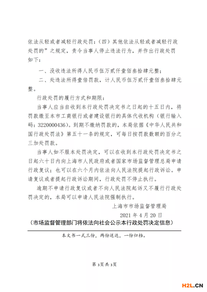 行政處罰決定書文號:滬市監(jiān)總處〔2021〕322020000436號