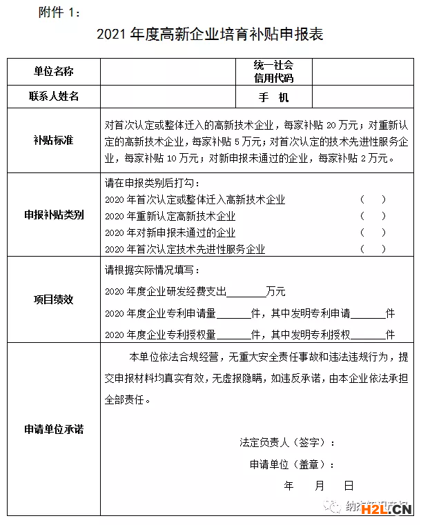 1、《2020年度高新企業(yè)培育補(bǔ)貼申請表》(見附件1);