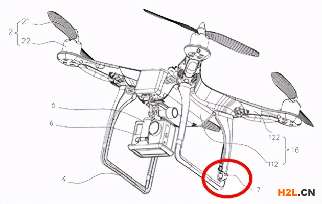 這件專利的核心技術(shù)點非常容易理解。無人機飛行需要判斷方位,通常需要安裝指南針,但是指南針具有磁性,會對無人機電子部件產(chǎn)生干擾,為了避免這種干擾,這件專利提出了一種方案,將指南針安裝在無人機的腳架上,遠(yuǎn)離其他電子部件,這樣最大程度地避免干擾。