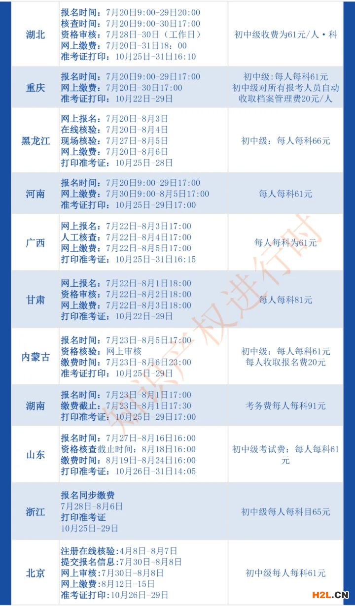 初級(jí)、中級(jí)考試時(shí)間為:2021年10月30、31日