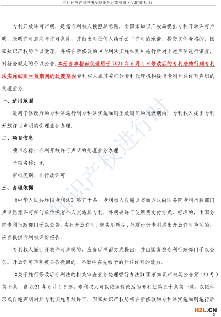 1.專利開放許可聲明。該表格應(yīng)當(dāng)為標(biāo)準(zhǔn)表格,內(nèi)容應(yīng)當(dāng)打印,并且由全體專利權(quán)人共同簽章或簽字。(專利開發(fā)許可聲明表格下載地址)