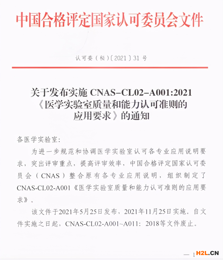 CNAS發(fā)布《醫(yī)學(xué)參考測(cè)量實(shí)驗(yàn)室能力認(rèn)可準(zhǔn)則》、《醫(yī)學(xué)實(shí)驗(yàn)室質(zhì)量和能力認(rèn)可準(zhǔn)則的應(yīng)用要求》、《醫(yī)學(xué)實(shí)驗(yàn)室認(rèn)可受理要求的說(shuō)明》等新認(rèn)可文件
