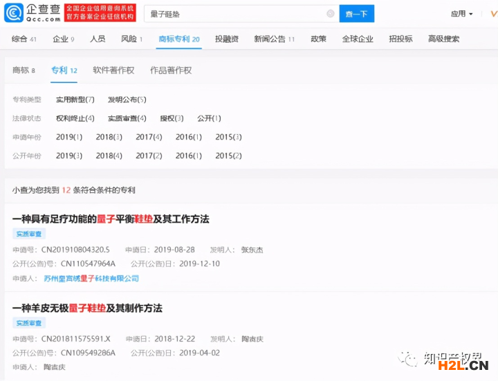 檢索“量子鞋墊”,相關(guān)專利有“一種量子多功能鞋墊”、“一種量子保健鞋墊”、“量子養(yǎng)生鞋墊”、“一種量子光波降血壓鞋墊”等。