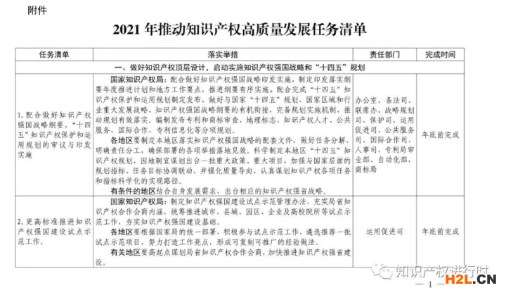 2021年推動知識產(chǎn)權(quán)高質(zhì)量發(fā)展任務(wù)清單