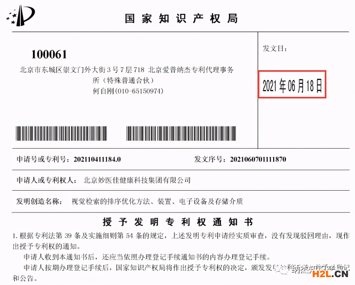 是這樣的,愛普納杰專利代理所代理的北京妙醫(yī)佳健康技術(shù)集團有限公司的2件專利,于近日收到國家知識產(chǎn)權(quán)局下發(fā)的專利授權(quán)通知。