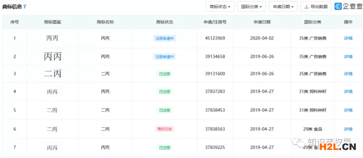 自2019年4月27日開(kāi)始,雄縣丙丙商貿(mào)有限公司相繼申請(qǐng)了4件“丙丙”商標(biāo),其中有兩件商標(biāo)已注冊(cè),另兩件正在注冊(cè)申請(qǐng)中。