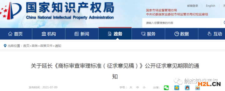為更加充分論證《商標(biāo)審查審理標(biāo)準(zhǔn)(征求意見稿)》(以下簡稱《標(biāo)準(zhǔn)》)相關(guān)修改內(nèi)容,更加全面收集各方意見建議,現(xiàn)決定將公開征求意見期限延長至2021年7月31日。